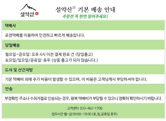 2. 해외구매 특성상 주문에서 배송까지는 평균 10~15일이 소요됩니다. 간혹 현지 제품 수급에 따라 부득이하게 시일이 더 소요 될 수 있으니 구매시 좀 더 여유있게 주문하시길 권합니다.
